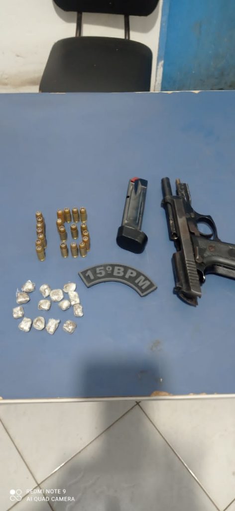 No decorrer da manhã de segunda-feira, o suspeito foi localizado novamente no mesmo bairro, por volta das 09h00. Durante a revista pessoal, a equipe policial encontrou em sua posse uma pistola calibre .40mm, com numeração suprimida, carregada com 12 munições intactas, além de 08 munições do mesmo calibre e 14 porções de uma substância análoga à maconha.