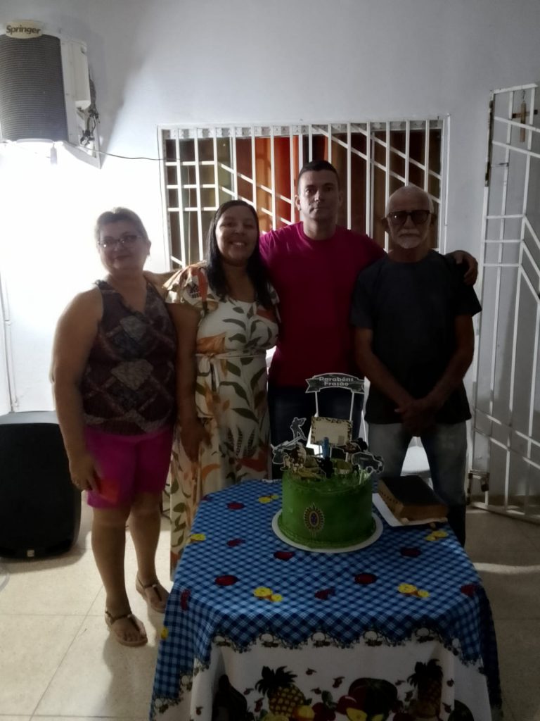 Frazão recebeu como muita emoção os policiais que participaram do culto de ação de graças e do tradicional parabéns pra você. A guarnição fez fotos com o aniversariante, familiares e convidados.