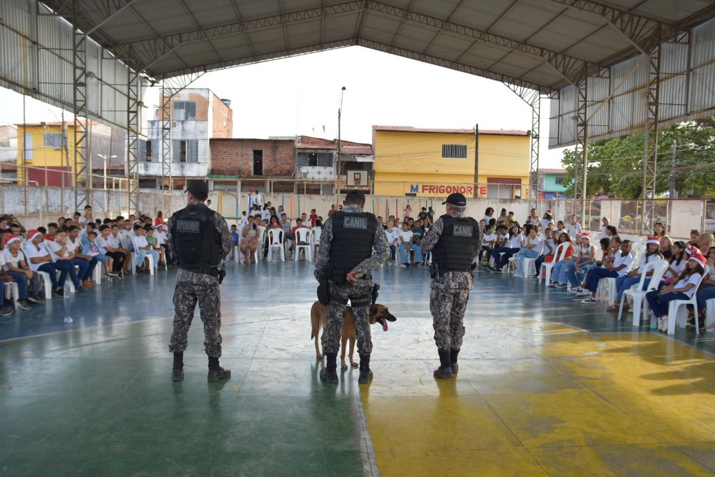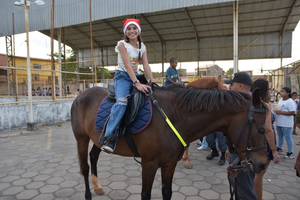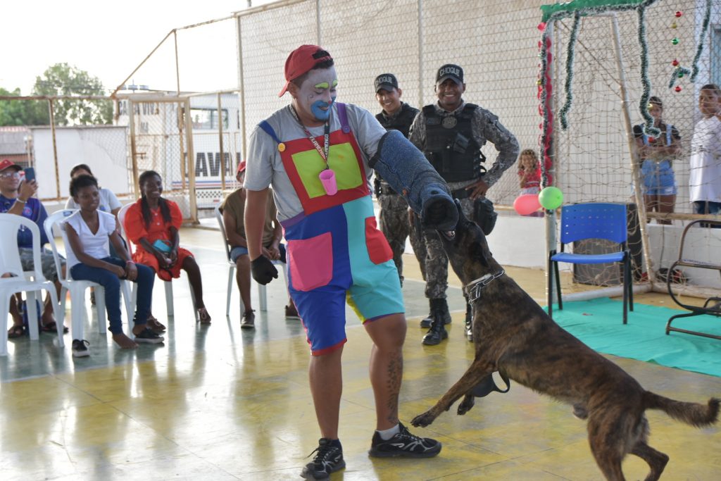 A Polícia Militar por meio do 6º Batalhão, sediado em São Luís, realizou na tarde de sexta-feira (15) Natal Solidário que contou as apresentações do Canil do BPChoque, da Cavalaria e brincadeiras com o palhaço Bololô que divertiram as crianças, além da distribuição de brinquedos e cestas básicas pelo Papai Noel que abrilhantou o evento com a sua chegada. Os olhos admirados e curiosos das crianças puderam ser vistos com a presença do bom velhinho.