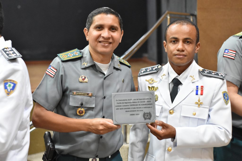 Trinta e três capitães da PMMA concluíram na manhã desta segunda-feira (22), o 9º Curso de Especialização em Gestão de Segurança Pública – CEGESP 2023. O curso acontece por meio de convênio entre Universidade Federal do Maranhão – UFMA e Academia de Polícia Militar Gonçalves Dias da PMMA (APMGD).