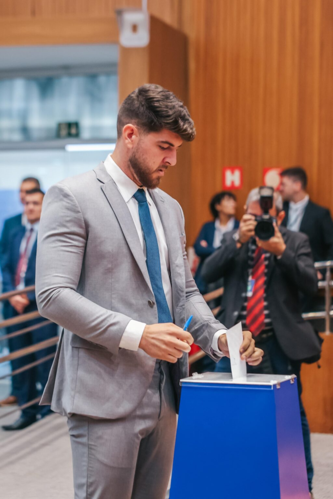 O deputado Davi Brandão (PSB) foi eleito primeiro secretário da Mesa Diretora da Assembleia para o biênio 2025/2027, em sessão realizada nesta quarta-feira (13). O parlamentar elegeu-se na chapa “União e Continuidade”, após a desistência do deputado Fernando Braide (PSD), que havia se candidatado ao cargo no pleito.