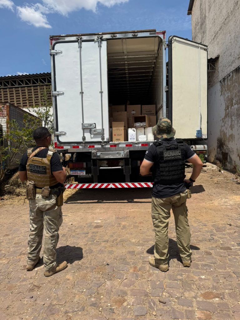 Durante a vistoria, os policiais também encontraram uma carga de defensivos agrícolas que havia sido subtraída dias antes na região de São João dos Patos (MA). A carga estava armazenada dentro do caminhão recuperado, reforçando a ligação entre os crimes.