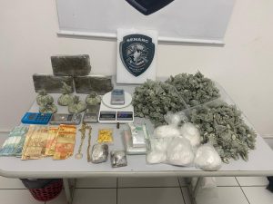 No local, os policiais encontraram grande quantidade de substâncias entorpecentes, entre elas maconha, cocaína e drogas sintéticas, além de dinheiro em espécie e balanças de precisão. Todo o material foi apreendido e encaminhado à sede da Senarc, onde os suspeitos foram autuados por tráfico e associação para o tráfico e permanecem à disposição da Justiça.