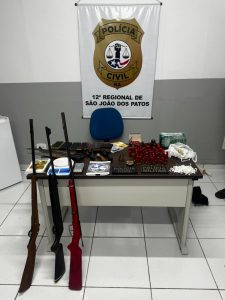 A ação coordenada pela 12ª Delegacia Regional de São João dos Patos, contou com as participações de policiais civis das delegacias de Pastos Bons, Paraibano, Buriti Bravo e Barão de Grajaú, além do apoio de policiais militares do 35º Batalhão da PMMA e de equipes do Centro Tático Aéreo (CTA).