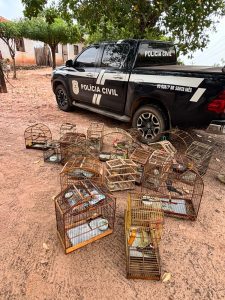 Durante as buscas, os policiais localizaram mais de 35 pássaros silvestres mantidos ilegalmente em cativeiro, incluindo espécies raras, acondicionados em diversas gaiolas, em flagrante violação à legislação ambiental. As aves foram imediatamente apreendidas e passarão pelos procedimentos legais para posterior destinação adequada, com acompanhamento dos órgãos ambientais competentes.