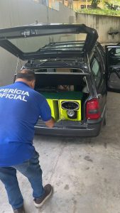 No âmbito de um inquérito policial, foi cumprido um mandado de busca e apreensão de um veículo apontado como responsável pelo excesso de ruído. Durante as diligências, os policiais apreenderam um simulacro de arma de fogo, uma caixa acústica tipo torre com potência de 2.200 watts, além de diversos equipamentos sonoros utilizados na infração.