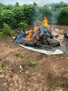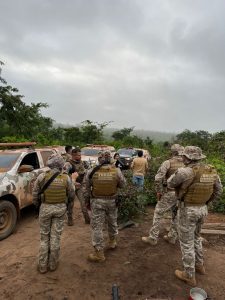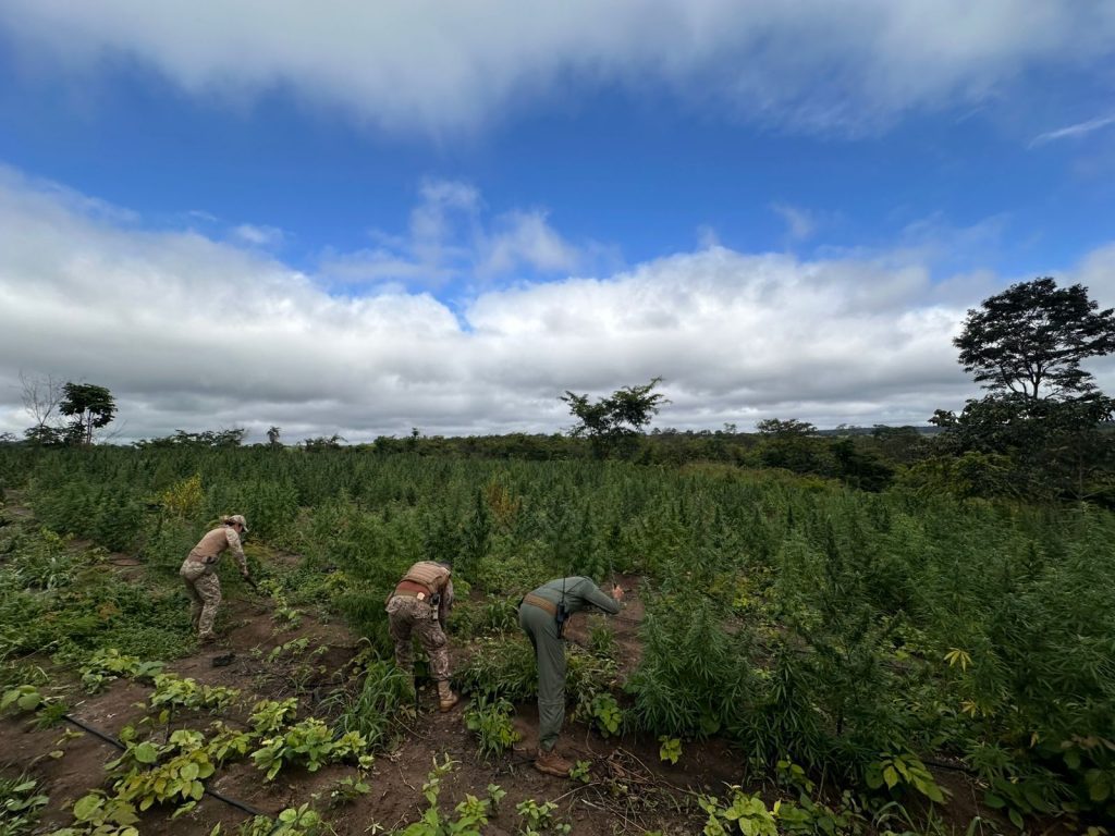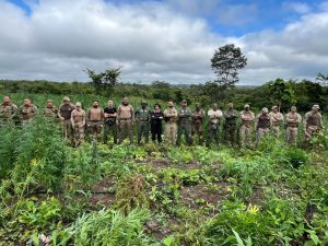 As equipes também localizaram mais de três roças de maconha em estágio avançado de maturação, mais de 80 mil pés da planta. Seguindo os protocolos legais de combate ao narcotráfico, toda a plantação foi incinerada ainda no local.